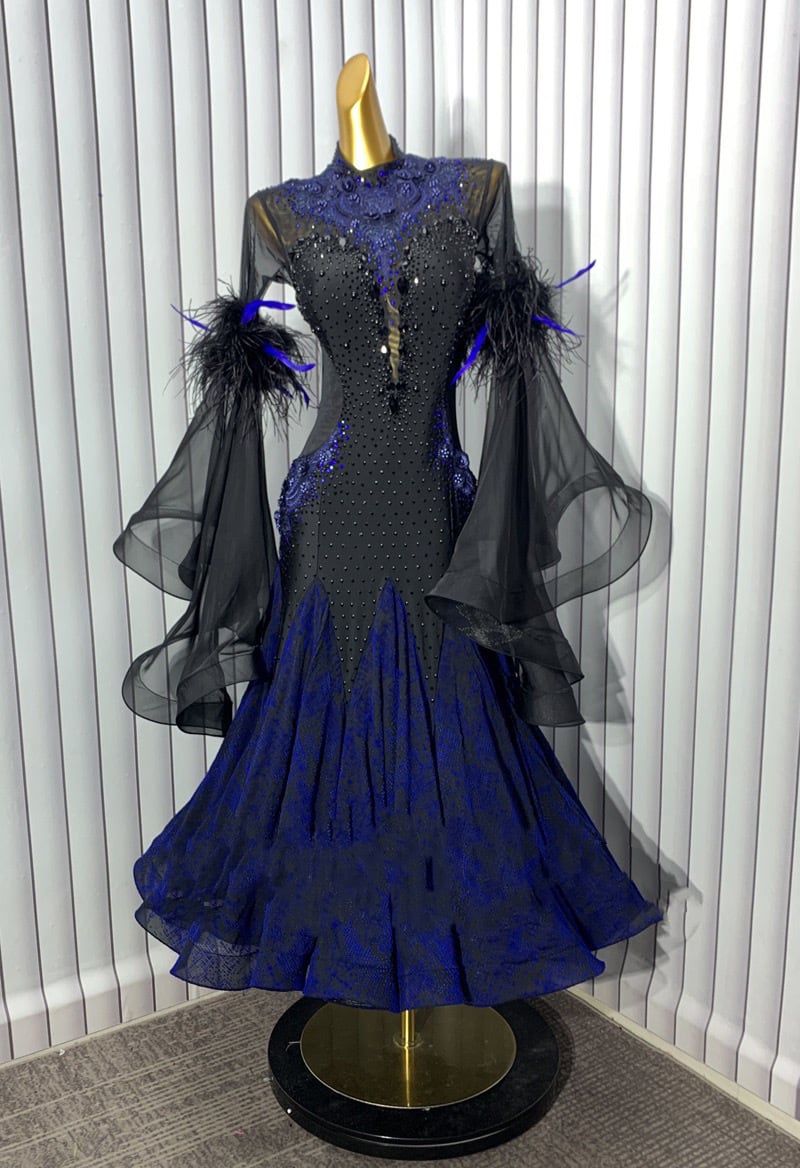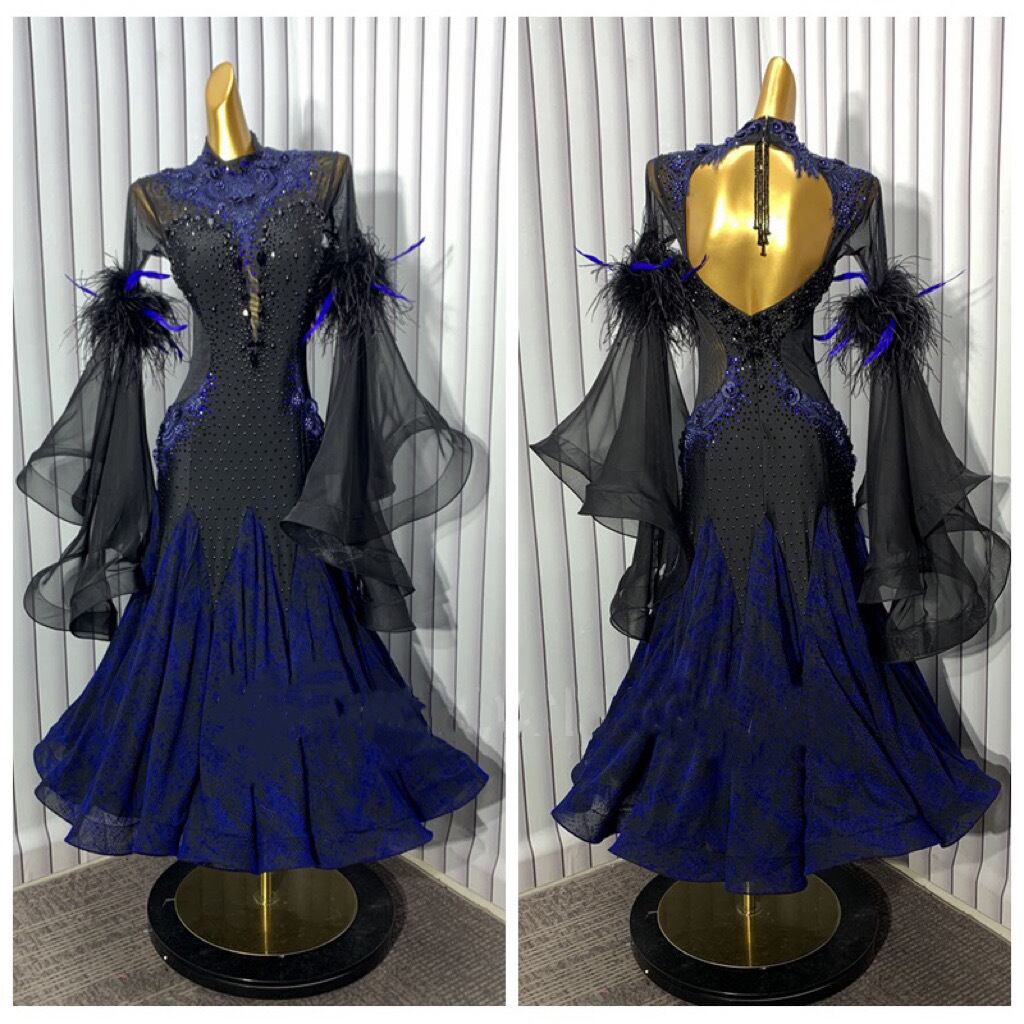 新品 ほぼオーダーメイドに近い豪華な社交ダンスドレス衣装。ウェスト、ヒップ、丈、袖の長さなど無料カスタマイズできます